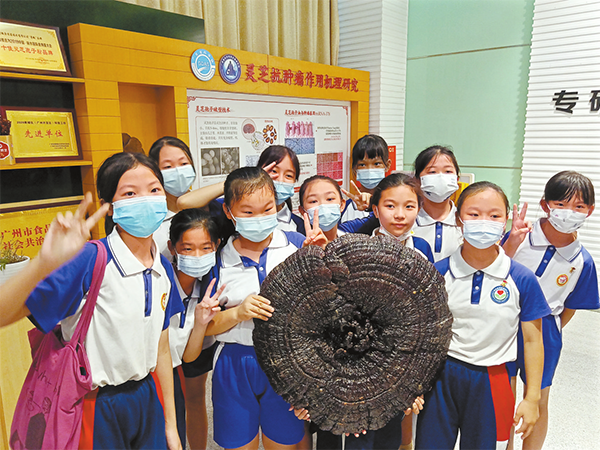 神奇的蘑菇世界科普基地重点展示各种奇异的蘑菇及食用菌、药用菌的最新研究成果。在这里,孩子们认识了各种奇异的食用菌、药用菌,用手触碰一下血芝,摸过的地方就会变得很红;用灯光照射,能看到灵芝上方飘着袅袅烟雾,原来是灵芝在生宝宝。据介绍,市面上可买到的孢子粉,便是从这些灵芝的“种子”破壁提取的。