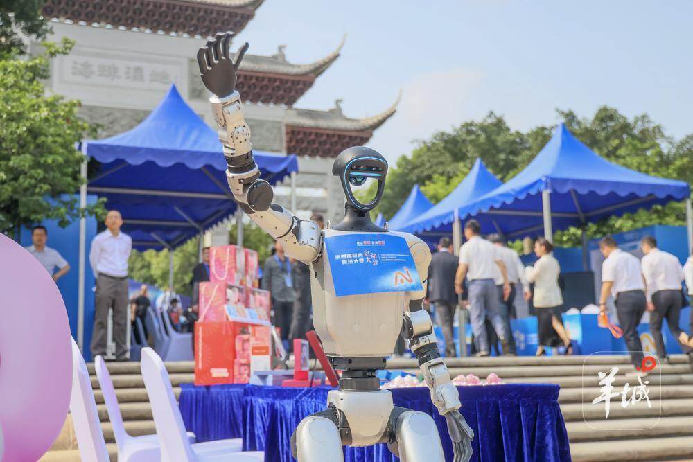 可用于搜救、探路等功鞥的人形机器人在第四届琶洲算法大赛开幕现场展示