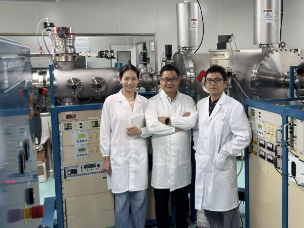图4. 团队成员广州地化所博士后姜帆(左)、研究员张干(中)和暨南大学副教授刘俊文(右)在广州地化所环境加速器质谱实验室。