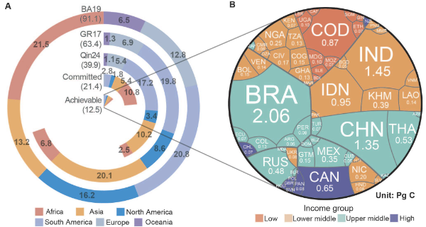 研究指出,全球仍有巨大的造林潜力,有望实现每年最多50亿吨的二氧化碳吸收。但在综合考虑土地可持续和国家意愿后,这一潜力会降低到每年15亿吨,造林的实际减排潜力远远低于预期,存在“纸上谈兵”带来的气候风险。