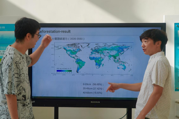 团队通过多年收集全球稀缺土壤数据,成功开发机器学习模型,可以量化造林土壤碳变化,并利用国际合作优势,结合已有植被碳估算,研发出能监测植被和土壤碳变化的“全能检测仪”。团队还通盘考虑生物多样性、水资源、地表增温、国家承诺等国际前沿有关植树造林的环境和社会经济约束,从土地的可持续“供给”和国家的政策“需求”两个维度,重新打造了未来森林恢复的“导航地图”。