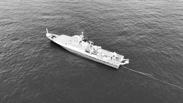 “海洋地质六号”开展拖曳发射作业。聂兵 摄