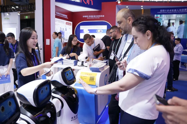 展位上,具备多语种交互能力的迎宾机器人X3与外商流畅对话,精准的个性化服务赢得外商阵阵赞叹。