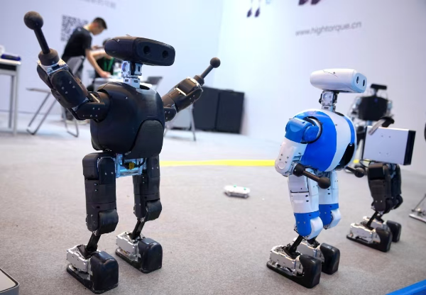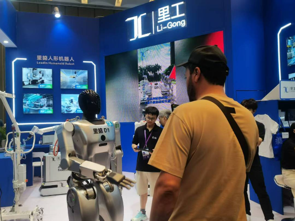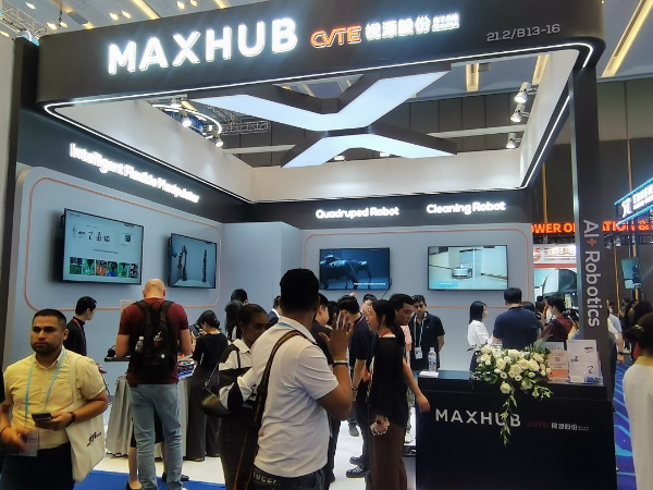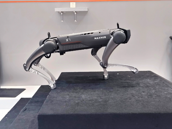 首次进驻服务机器人展区的视源股份,带来在世界机器人大会上获奖的MAXHUB X7工业级四足机器人,以及可完成穿针、搭积木等高精度动作的智能柔性机械臂,吸引众多境外客商现场互动体验。