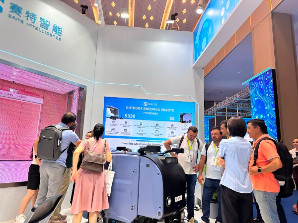 视源股份展位负责人介绍,他们的商用清洁机器人已与来自日韩、新加坡等亚太国家,以及德国、英国、法国、意大利、荷兰、瑞典、波兰等欧洲国家的客户达成合作,陆续实现落地部署,在展会现场不少海外客商对该产品产生浓厚的兴趣。