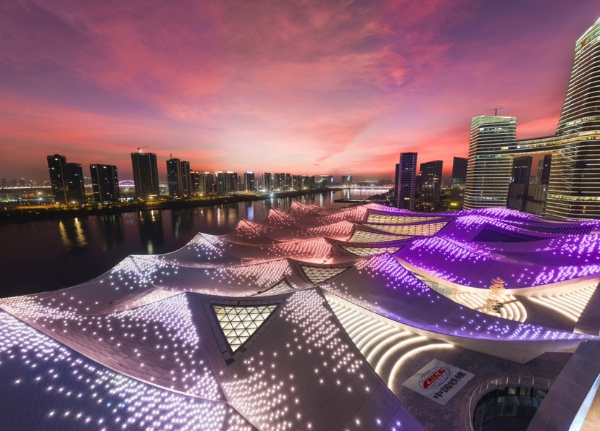 “千帆竞渡,科技远航!”12月12日,由中国铁建参与投资建设的大湾区科学会堂,在广州南沙明珠湾区灵山岛尖正式全面亮相,粤港澳大湾区再添一座国际水准的科学交流地标。全国首创的连续波浪形单层刚性悬垂网壳结构、全国最大的波浪形连续焊接不锈钢屋面,搭配全程践行环保理念的“近零碳建筑”设计,这座新地标从里到外都浸润着前沿科技内核。