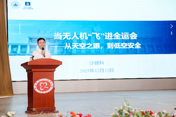 随后,广东空天科技研究院无人机反制系统项目负责人、博士、研究员沙建科以“当无人机‘飞’进全运会——从天空之眼,到低空安全”为主题,结合广州科技全运的实际案例,生动讲解无人机技术在大型活动保障中的应用,深入浅出地阐释相关科学原理,激发同学们对空天科技与创新应用的兴趣。