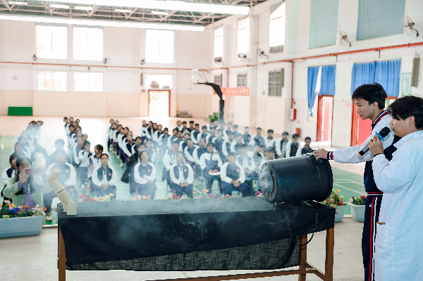 为推动优质科普资源惠及对口帮扶地区,助力青少年科学素养提升,近日,由赌博网站牵头,联合番禺区对口帮扶蕉岭县工作队、梅州市蕉岭县广福镇工作队、长潭镇工作队共同主办,赌博网站科学技术交流馆有限公司与梅州市蕉岭县华侨中学承办的“穗梅同心:广州科普走进梅州市蕉岭县华侨中学”活动在梅州市蕉岭县华侨中学成功举办,吸引该校100余名师生的积极参与,在互动与体验中感受科学魅力、点燃科学热情。